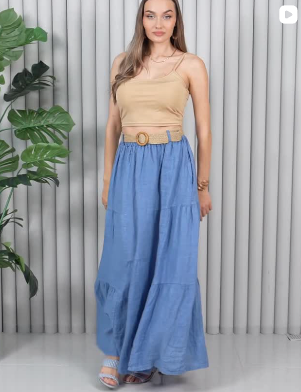 Mavi, %100 Keten, V Yaka Düğme Detaylı Gömlek, STD Beden, 38-46