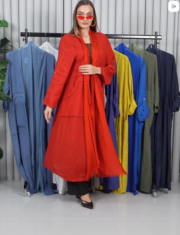 Somon, %100 Keten, V Yaka Düğme Detaylı Gömlek, STD Beden, 38-46
