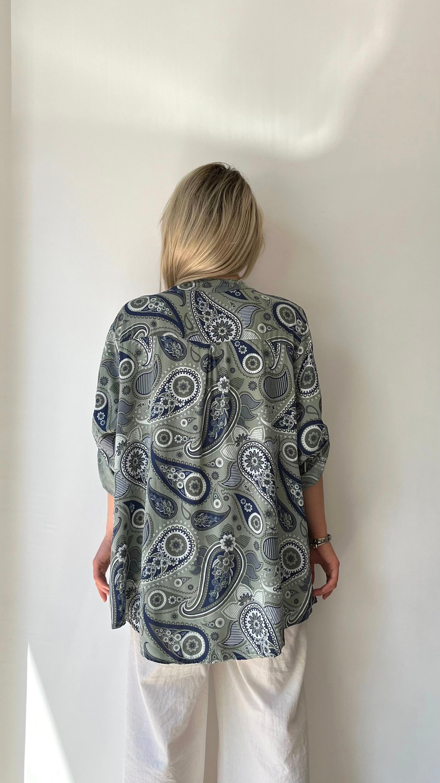 Haki Yeşil, %100 Viskon, Şal Desenli Gömlek