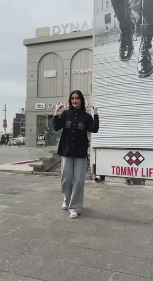 Siyah, %100 Pamuk, Cep Kısmı Payet İşli, Dokulu Gömlek / STD Beden, 36/42